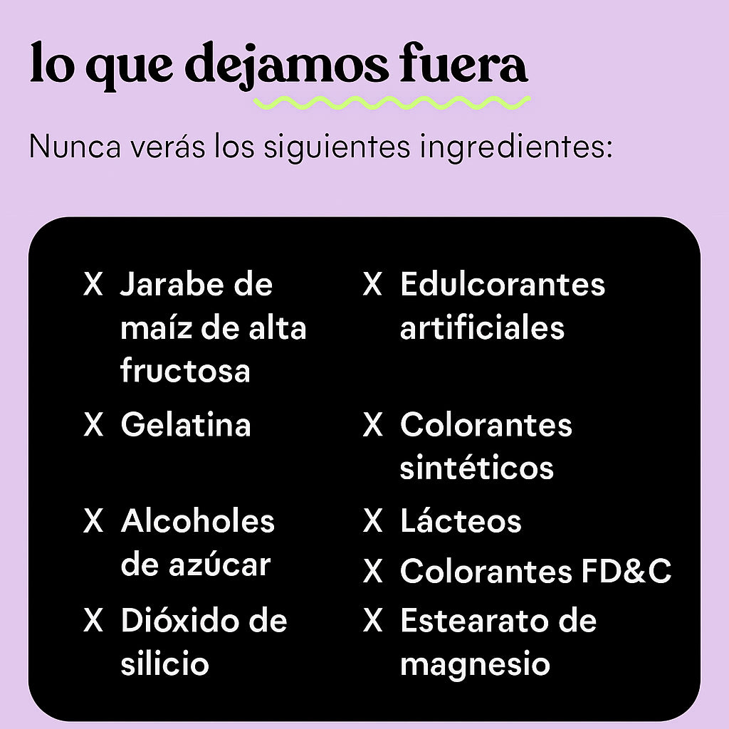 Vegano. Sin gluten. Sin azúcar. Fabricado bajo estándares GMP y testeado en laboratorio.